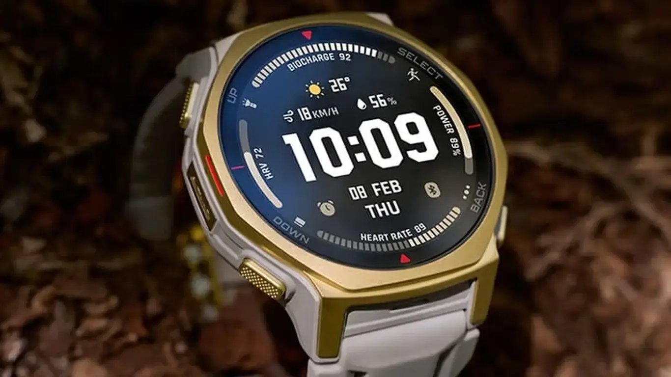 Часы доступны в цветах Arctic Gold и Black Gold, а прочный корпус выполнен из армированного пластика с титановыми элементами. Дисплей — 1,32-дюймовый AMOLED с разрешением 466x466 пикселей и рекордной яркостью 3 000 нит, защищён сапфировым стеклом для дополнительной прочности и устойчивости к царапинам.
